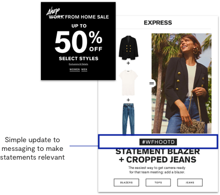 These simple updates can help improve your relevance in the current climate and help your shoppers feel like there’s still some level of normalcy without coming across as tone deaf to what’s happening.