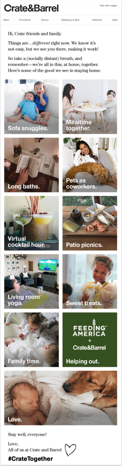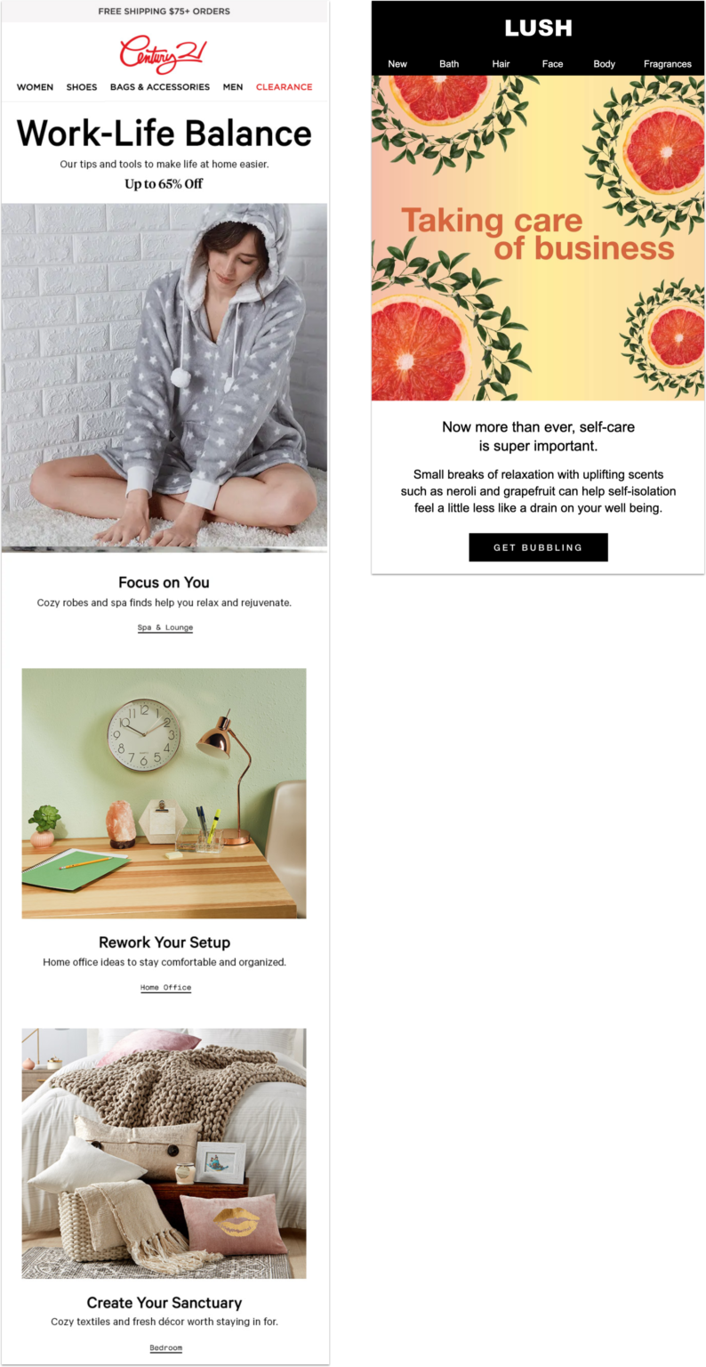 What’s happening: Many brands are pausing evergreen campaigns like email triggers and other marketing outreach to review their messaging and make sure the tone is on point. For example, we’ve seen a lot of effort to remove “hard sell” messaging like buy now, shop now and buy online, pick up in store.