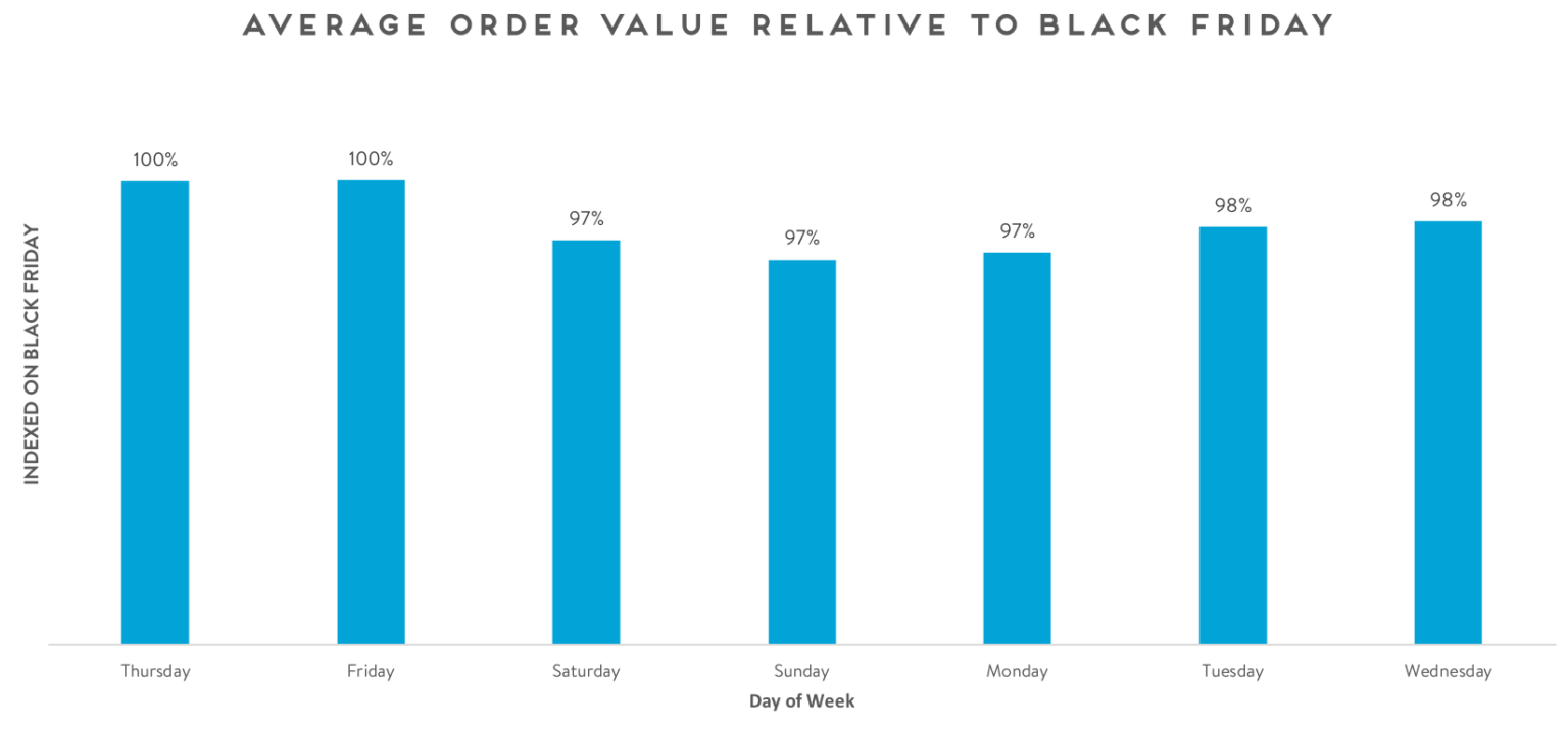 Finally, each day of Cyber Week 2018 saw an increase in the number of customers who placed orders compared to 2017. Altogether, this data suggests that even though retailers had less traffic in 2018 than they did in 2017, they did a better job of converting customers once they landed onsite in 2018 compared to 2017.