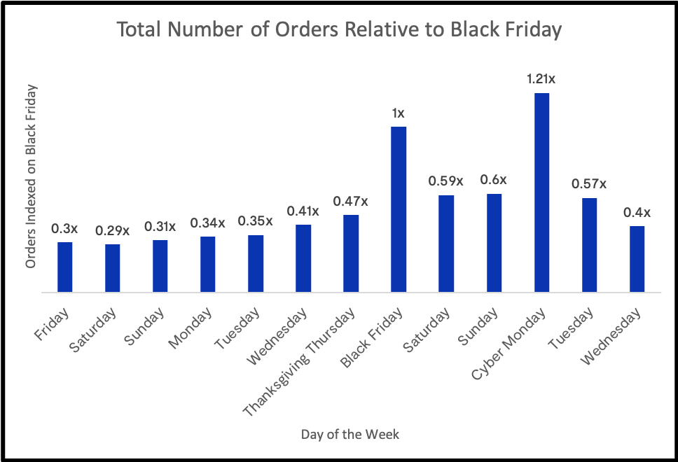There’s no doubt that a full Cyber Week has spread out shopping beyond what used to be a single blockbuster day. While Black Friday still reigns supreme as the strongest day for retail, we’re starting to see the impact of shoppers looking for sales throughout the entire week.