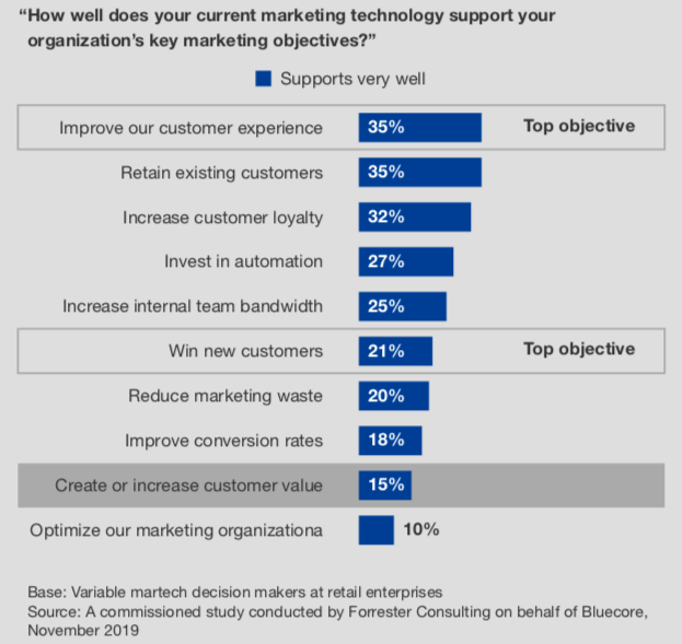 Retail marketers have a clear picture of what they want to deliver in 2020, but the path to making that vision a reality is complicated, according to a November 2019 commissioned study conducted by Forrester Consulting on behalf of Bluecore.