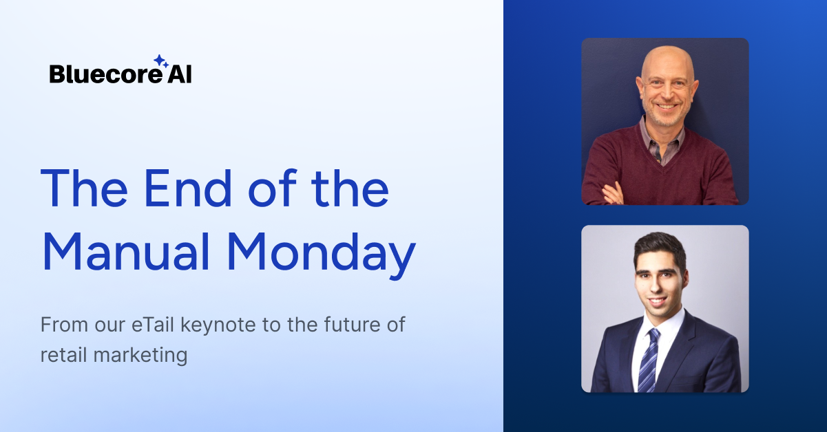 Bluecore Chief Customer Officer Ryan Deutsch was joined on stage by retail veteran Jordan Bowry (formerly of Michael Kors) to pull back the curtain on a new reality: The Marketing Agent. For years, we have seen our customers and the broader retail industry being taxed by an “80/20” problem. Teams spend 80% of their time finding answers, digging through spreadsheets and SQL queues, and only 20% of their time actually acting on them.