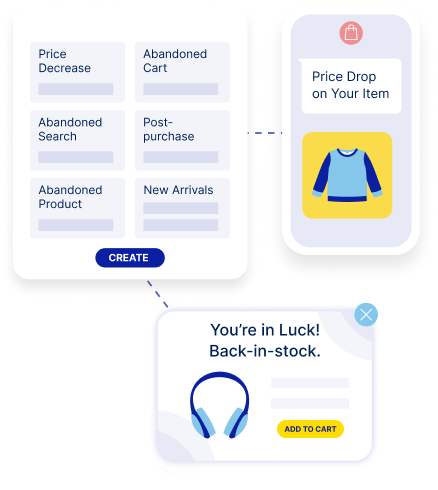 With product triggers like price drop, new arrival, and back-in-stock, you don’t have to stop at the handful of basic triggers that other platforms offer. Optimize with a click, and drive incremental sales effortlessly, in minutes, without custom tech configurations.