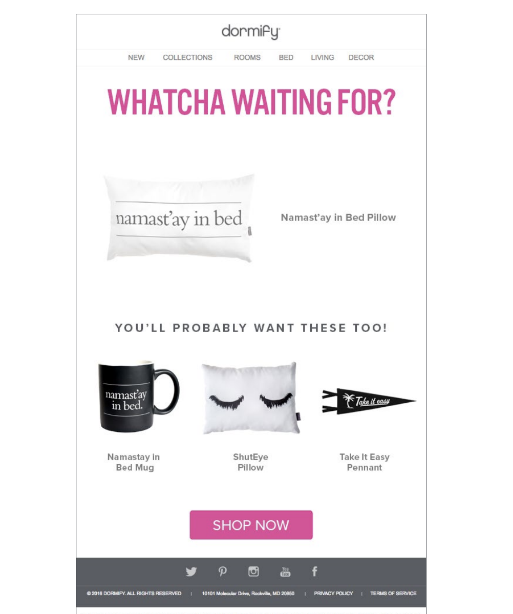 When designing these emails, use plenty of product images and only use text when it is necessary. Incorporate personalized product recommendations into the design too, as doing so will help get customers back onto your website. These recommendations could be anything from best sellers from the category page to items that similar customers liked.